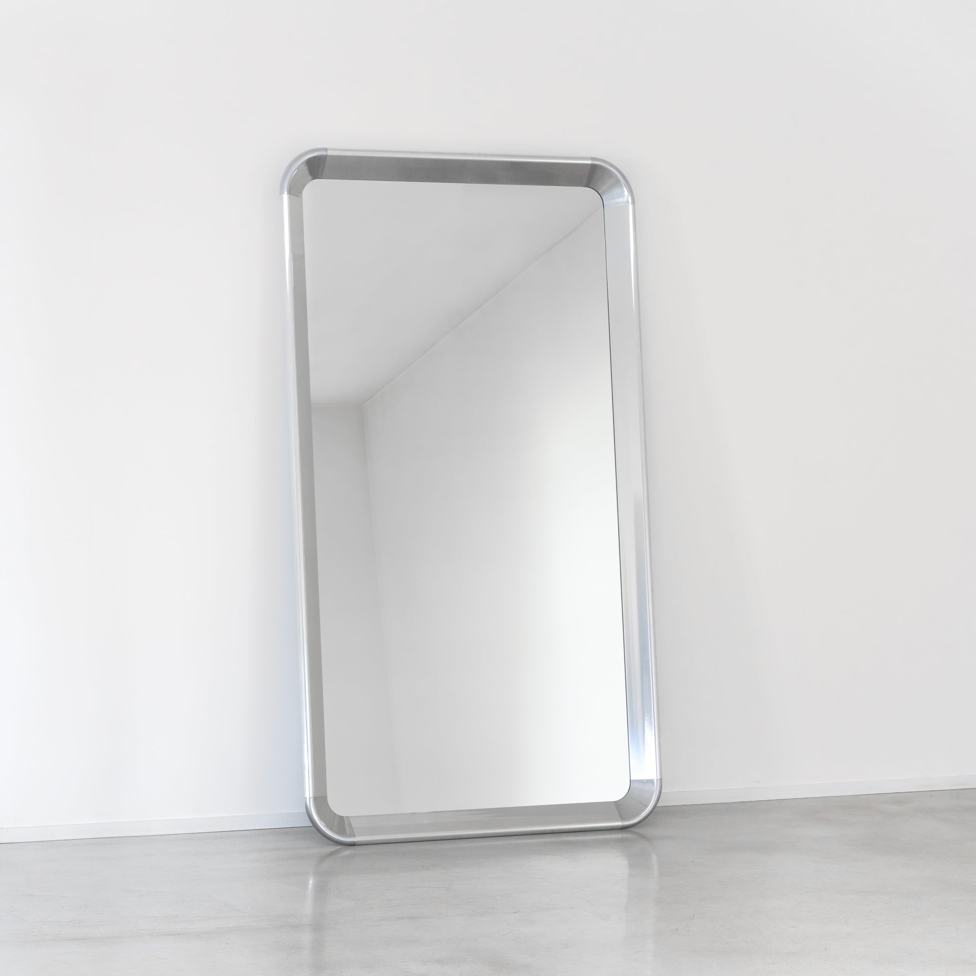 Material: Rahmen aus Profilaluminium poliert oder lackiert. Verbindungsecken aus Aluminium-Druckguss, poliert oder lackiert. Spiegelglas mit Sicherheitsfolie auf der Rückseite. Beschläge aus verzinktem Eisen zur Wandmontage sind vorhanden. 73x 190 cm